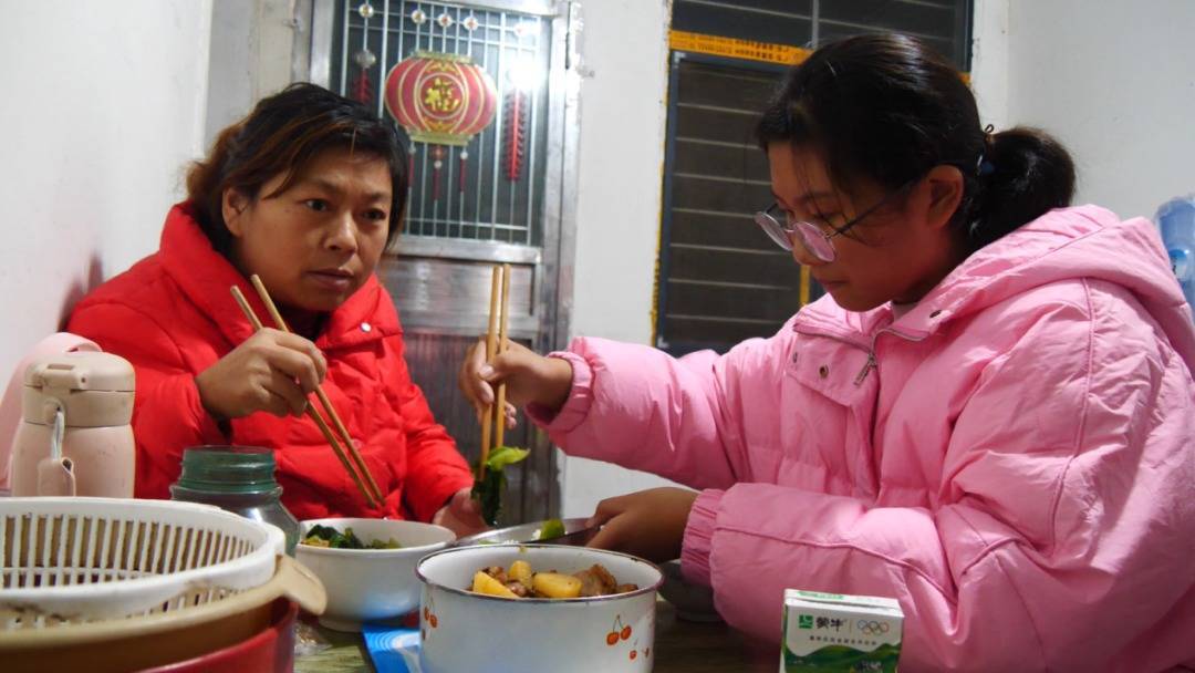 母女俩难得加餐。