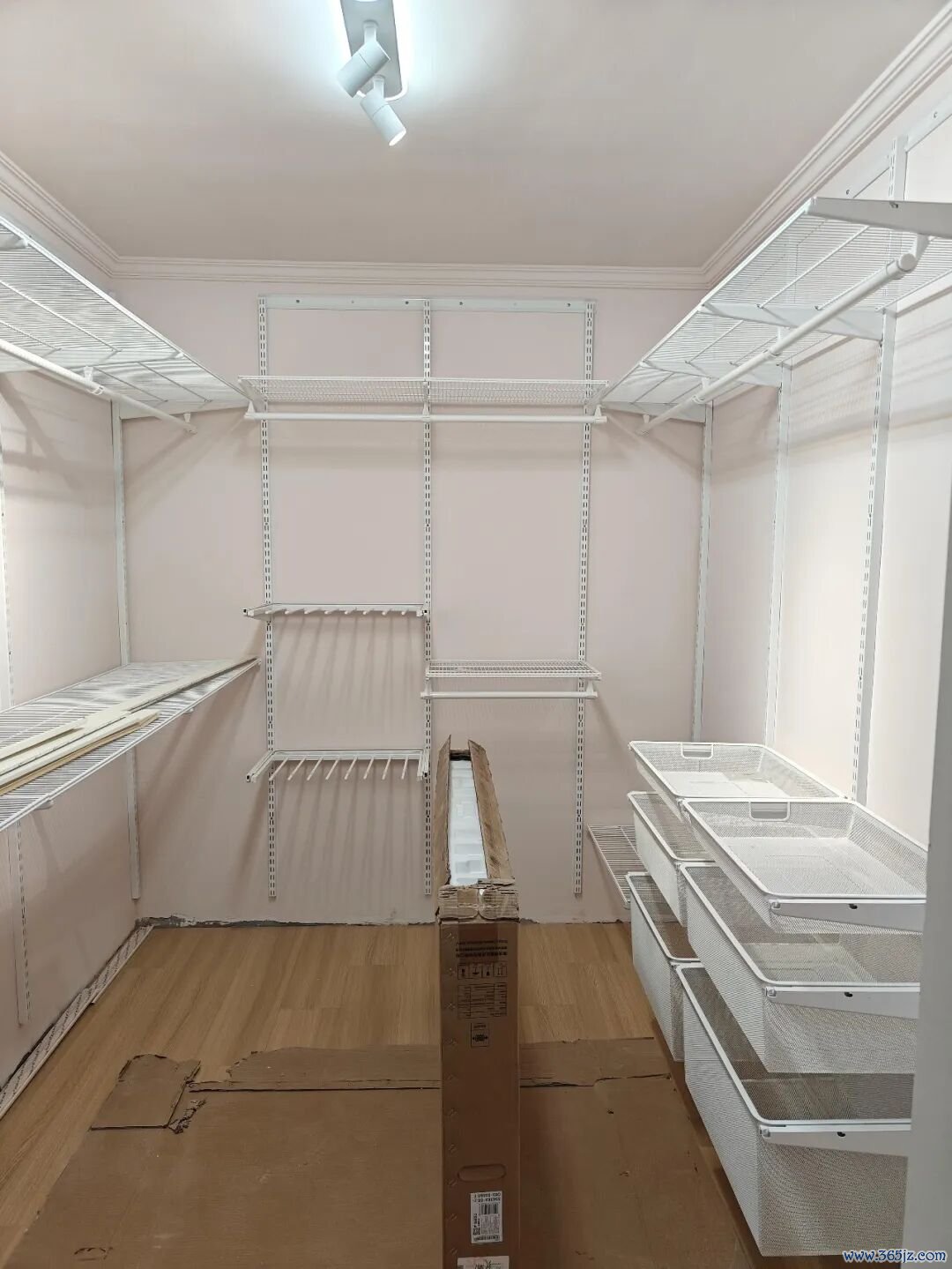 金属架的优点,首先就是环保,全是金属材料,用螺丝和锁扣连接,没有板材、没有胶水,从根源上杜绝甲醛,装完直接就能用,不用晾,对于急着入住的年轻人来说,简直是福音!