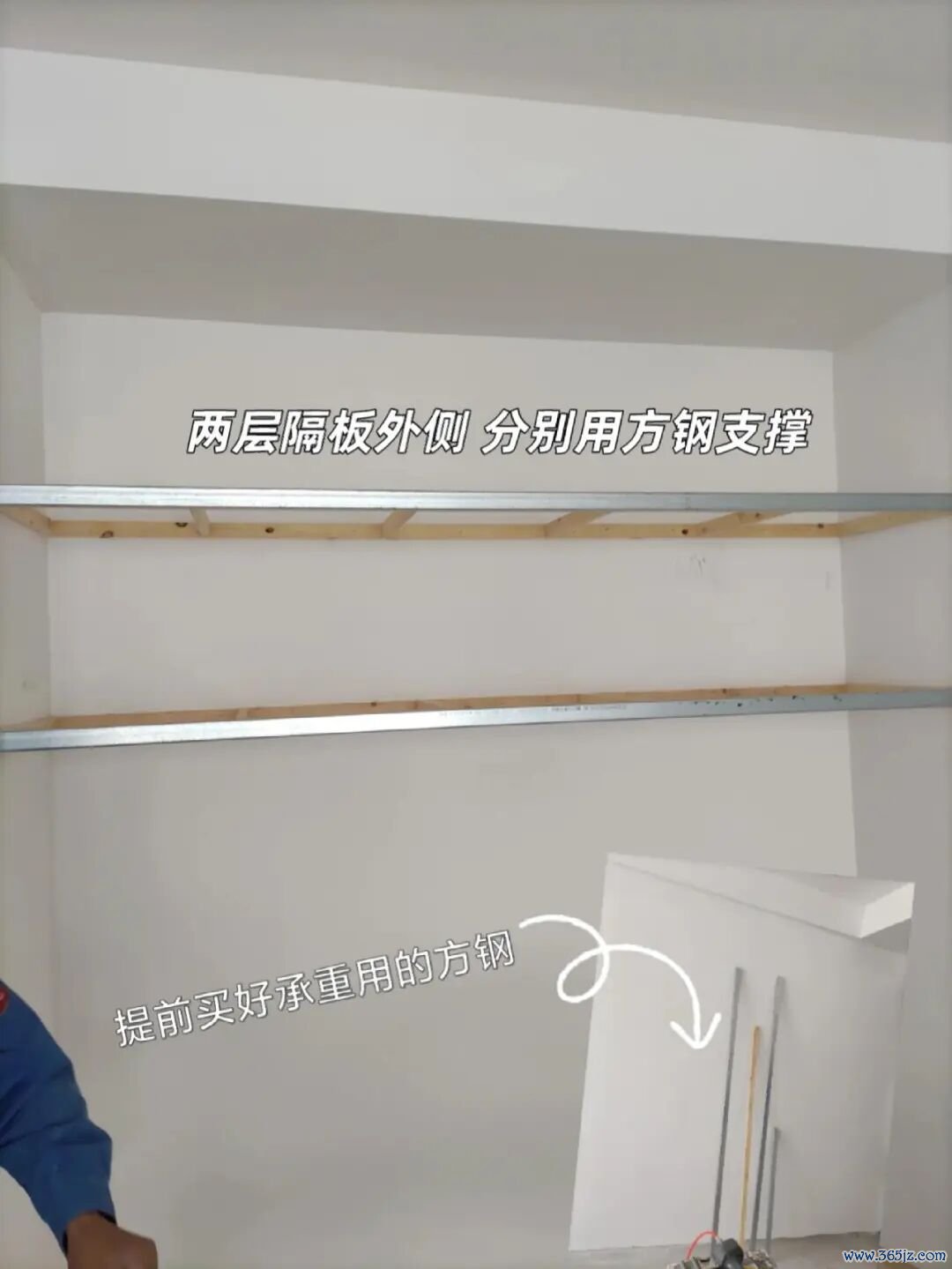 网友@乌豆174 家的砌墙壁柜,就是木工师傅现场做的,边上砌墙,木架和方钢做了两层层板,20年都不会变形。加上挂衣杆,成本才几百块。