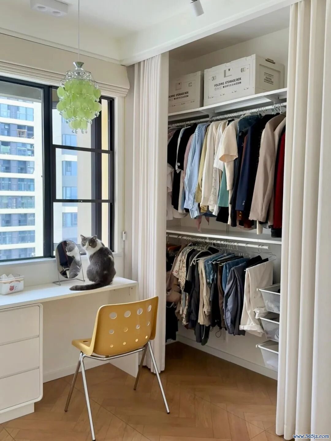 如果觉得窗帘款不够精致,那就用折叠门,既有颜值,又有实用性。