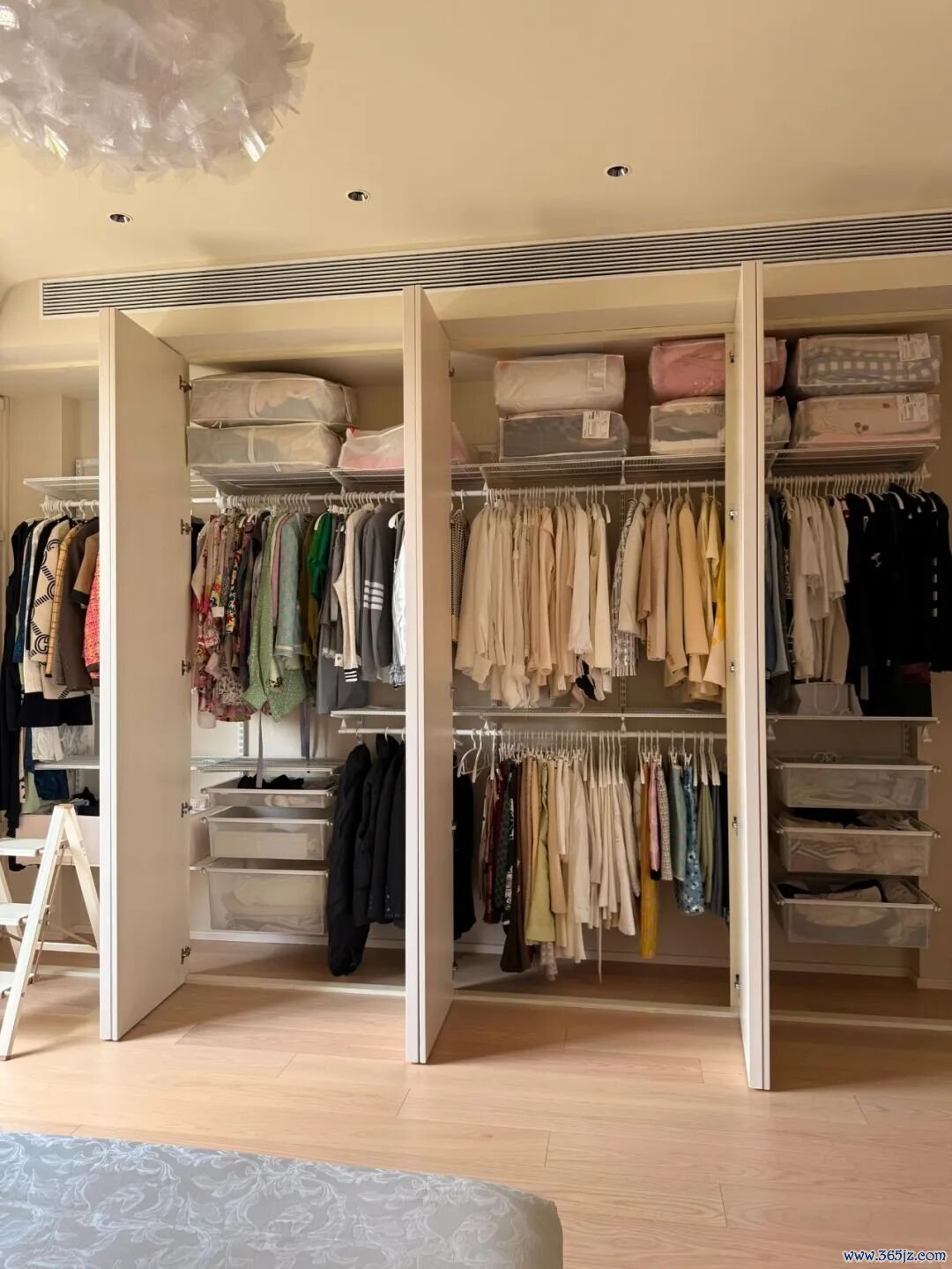 春天把长衣区改成短衣区,秋天又能再改回来。有了孩子,直接把叠放区改成孩子衣物收纳区,跟着生活节奏变,再也不用被固定格局框死!