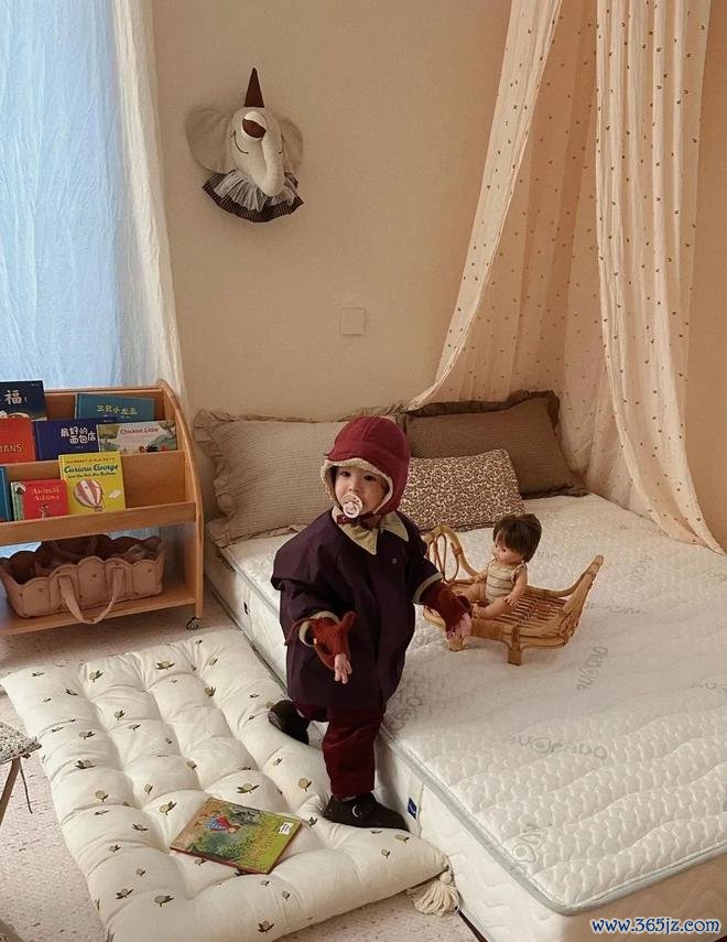 这样方式特别适合小朋友的房间,本来小朋友身高就不高,一个20多厘米厚的床垫刚刚好适合他们肉乎乎的小短腿,不要床架子之后,小朋友在上面蹦蹦跳跳,甚至直接从床垫上蹦下来,那是开心得不得了。