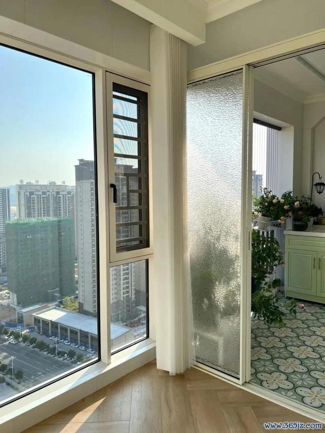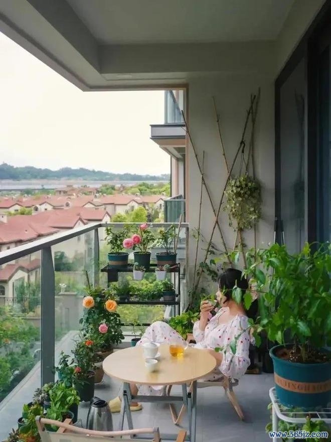 越来越多的年轻人,选择将阳台封一半、留一半,封住的部分只为能让客厅干净性,不封的部分将其打造成一个植物休闲角。