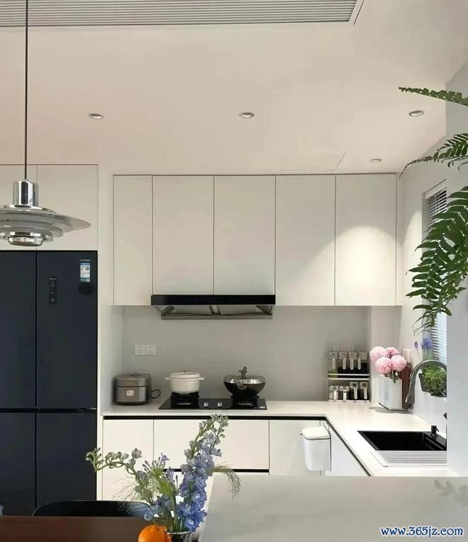 将厨房原有露出来的棚顶,直接做乳胶漆,和客厅、餐厅一样,这样做不仅省钱,还十分显高,空间十分显大。
